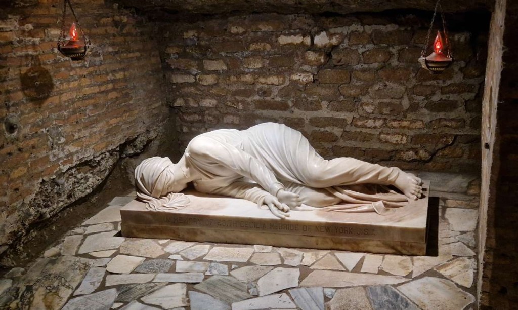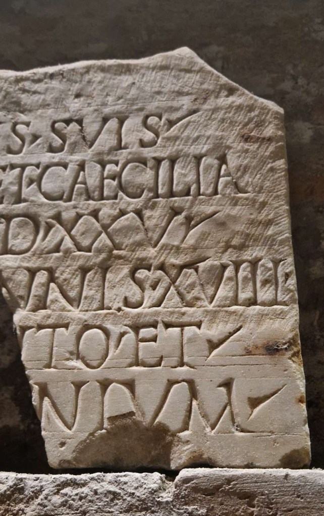 Hinunter zu den…Katakomben und……ihren GängenGänge mit FreskenNischengräber……und Gräber für Bessergestelltealte Inschriften……und…GrabverzierungenStatue der heiligen Cäcilia