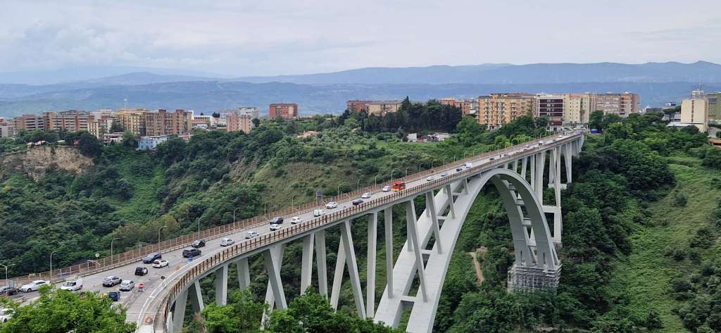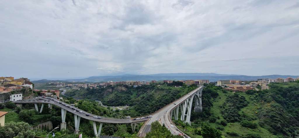 Weiter ging die Fahrt nach Catanzaro, natürlich mit einer gesperrten Strasse. Dort wollten wir die Ponte Bisantis sehen. Diese ist 468m lang und überquert mit einem einzigen Bogen die 112m tiefe Schlucht mit dem Fluss Fiumarella. Sie ist immer noch die grösste Bogenbrücke Italiens.