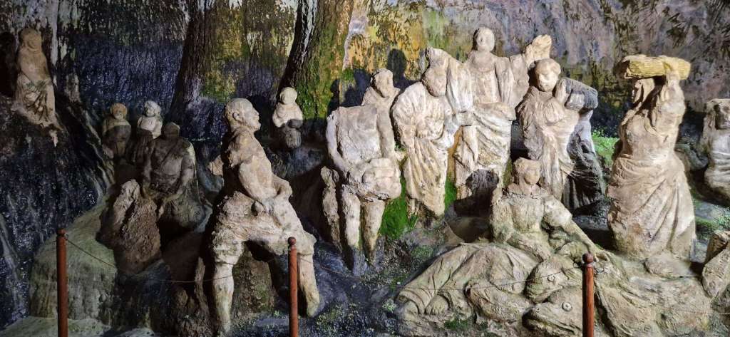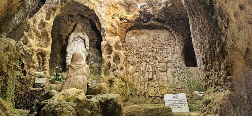 Die zugenommenen Kalorien wurden beim Fussmarsch zur Piedigrotta-Kirche wieder herausgeschwitzt. Der Legende nach haben Seeleute eines gesunkenen Schiffes eine Kapelle in den Felsen gegraben zum Dank ihrer Rettung. Ab 1880 vergrösserte ein lokaler Künstler die Höhle und füllte die Räume mit weiteren Skulpturen.