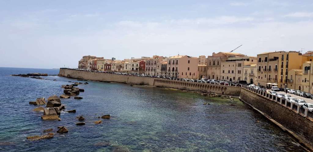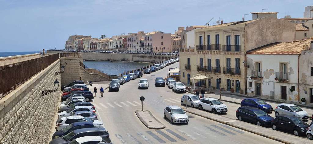 Die Anfahrt führte an Taormina vorbei. Auch die Touristenbusse kletterten die paar Serpentinen hoch. Wie auf der ganzen Welt, auch hier das Schauspiel…ausholender Bus für Kurve…nicht aufmerksamer Autofahrer auf der Gegenfahrbahn hält nicht an…Bus und Auto haben nicht mehr genügend Platz und ruckeln Zentimeterweise aneinander vorbei.