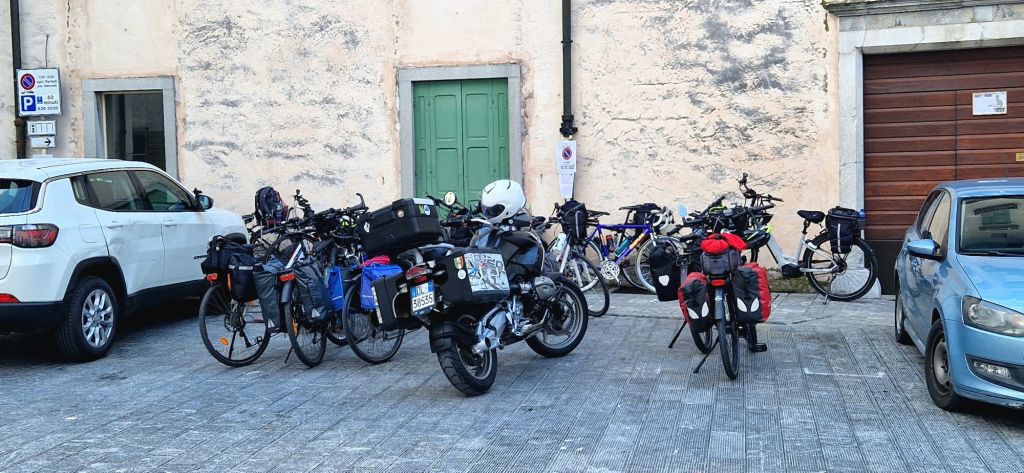 Mit uns haben dieses Vorhaben auch etwa 50 Fahrradtouristen gemacht. Alle mit Seitentaschen, Navi und Elektroantrieb ausgerüstet, man könnte meinen sie seien tausende von Kilometer unterwegs.