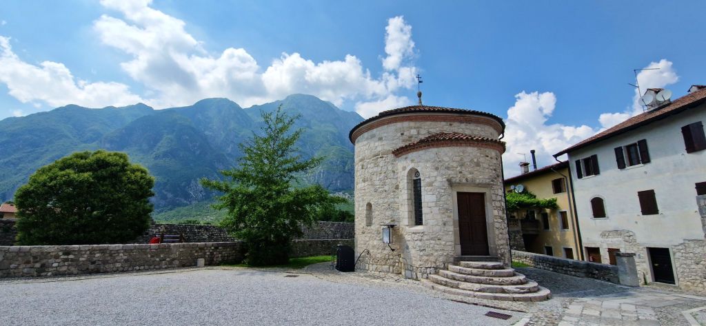 Eine Stadtmauer in Venzone weckte unser Interesse. Kurz umgekehrt und in das sehr kleine Städtchen gefahren. Dieses wurde bei einem Erdbeben 1976 beinahe dem Erdboden gleichgemacht. Danach wurde es so wieder aufgebaut, wie es im Mittelalter aussah. Venzone wurde danach zum Nationaldenkmal erklärt und ist heute die letzte befestigte Stadt aus dem 14. Jahrhundert.